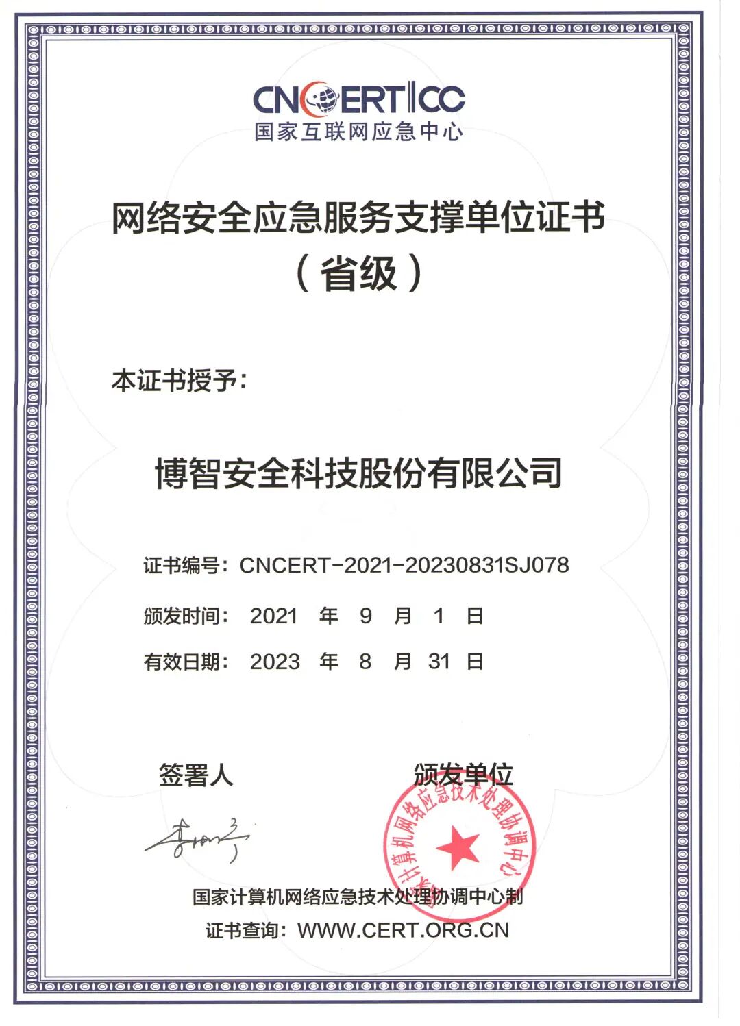 博智安全服务团队由资深的服务专家和大批高学历人才组建而成,具备工业互联网安全事件应急演练完善的系统化工作流程,拥有丰富的渗透经验和高超的攻防技术,先后获得CNCERT网络安全应急服务支撑单位、江苏省通信管理局网络安全技术支撑单位等多项资质。
