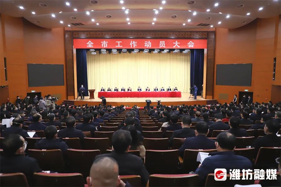 近日,潍坊市工作动员大会在潍坊富华国际会议中心举行。会议动员全市上下深入学习贯彻党的二十大精神,全面落实党中央决策部署,按照山东省委、省政府工作安排,紧紧围绕“1441”工作思路,坚定信心抓落实,加快建设新时代社会主义现代化强市。