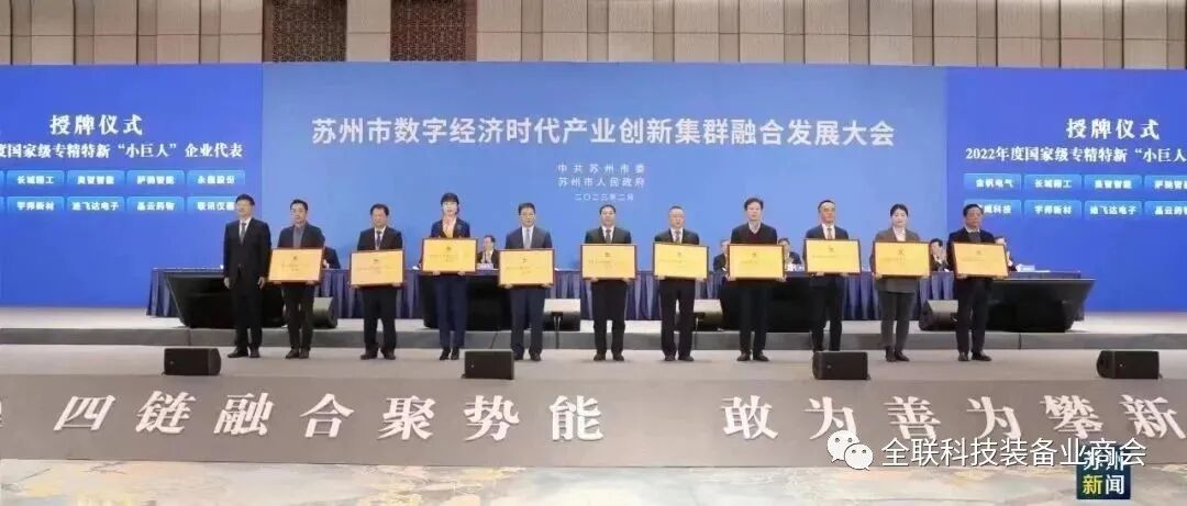 会上,对国家级专精特新“小巨人”企业、独角兽企业等进行了授牌、揭牌,并集中挂牌了产业创新集群建设25个细分领域行业协会(联合会)。我会副会长单位江苏永鼎股份有限公司、江苏永鼎盛达电缆有限公司荣获国家专精特新“小巨人”企业,永鼎此次作为企业代表接受授牌,永鼎股份董事、副总经理张国栋出席并参加授牌仪式。