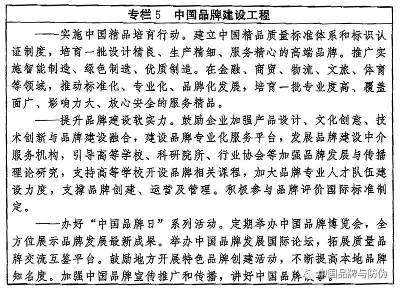 ——品牌建设取得更大进展。品牌培育、发展、壮大的促进机制和支持制度更加健全,品牌建设水平显著提高,企业争创品牌、大众信赖品牌的社会氛围更加浓厚,品质卓越、特色鲜明的品牌领军企业持续涌现,形成一大批质量过硬、优势明显的中国品牌。