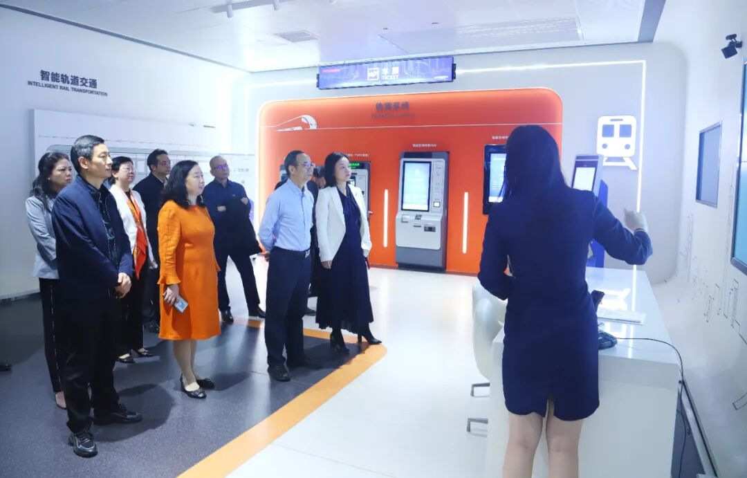 调研队伍来到佳都集团人工智能与元宇宙科技馆,深入了解佳都的发展历程、业务布局、科技实力,并亲身体验和感受佳都在智慧轨道交通、智慧城市交通、智慧城市治理等领域的应用产品。