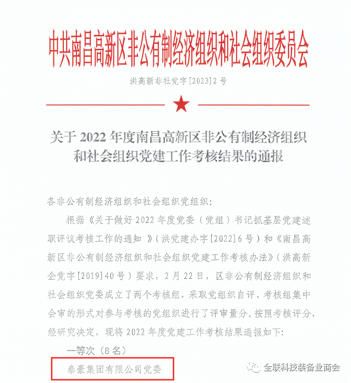 泰豪公司党委在南昌国家高新区“两新”组织党建年度考核中再度名列前茅