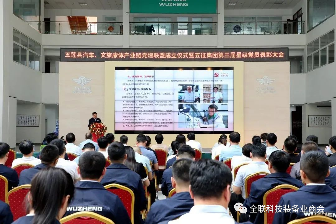 为推动党建链与汽车产业链、文旅康养产业链深度融合,以党建引领企业高质量发展,5月31日,山东省五莲县在我会副会长单位五征集团召开汽车、文旅康体产业链党建联盟成立仪式暨五征集团第三届星级党员表彰大会。市北经济开发区党工委书记、管委会主任陈常永,县委常委、统战部部长卢绪龙,县委常委、组织部部长柴岚民出席会议,县委组织部、县工信局、洪凝街道等部门负责人以及汽车、文旅康体产业链党建联盟成员单位负责人,五征集团各党支部书记、第三届星级党员参加了会议。会议由陈常永主持。