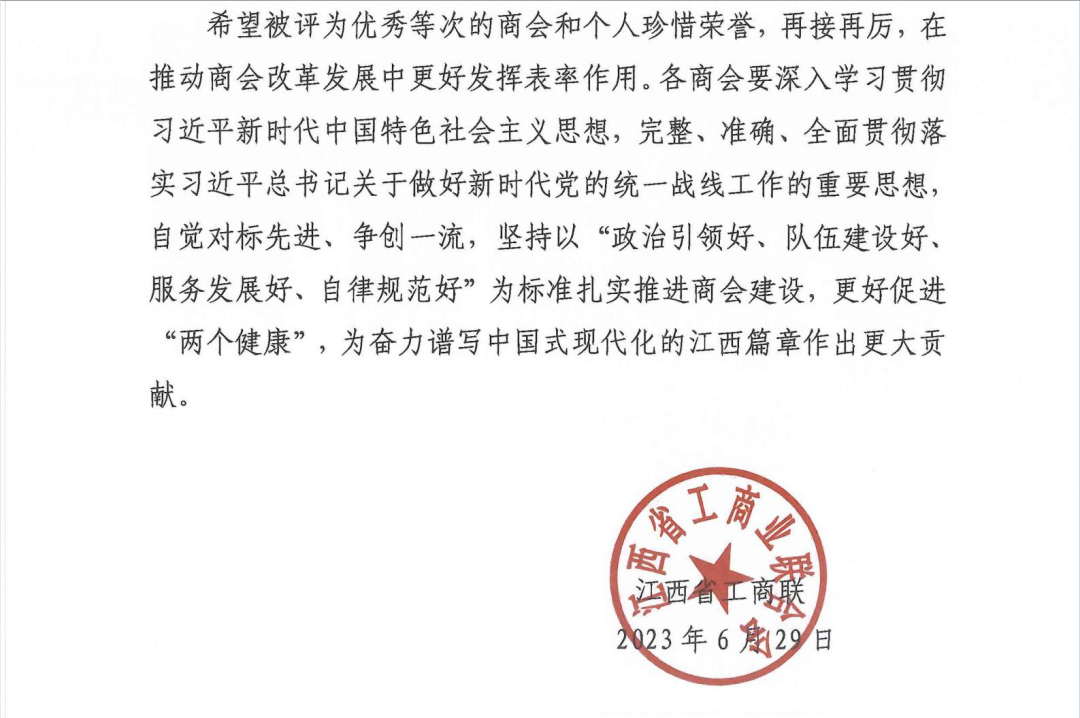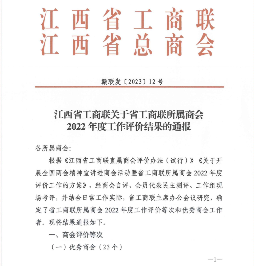 近日,江西省工商联下发《关于省工商联所属商会2022年度工作评价结果的通报》(〔2023〕12号),根据《江西省工商联直属商会评价办法(试行)》《关于开展全国两会精神宣讲进商会活动暨省工商联所属商会2022年度评价工作的方案》,经商会自评、会员代表民主测评、工作组现场考评,并结合日常工作实际,江西省工商联主席办公会议研究,确定了江西省工商联所属商会2022年度工作评价等次和优秀商会工作者。江西省科技装备业商会在本次评选中荣获“江西省工商联2022年度优秀商会”称号。